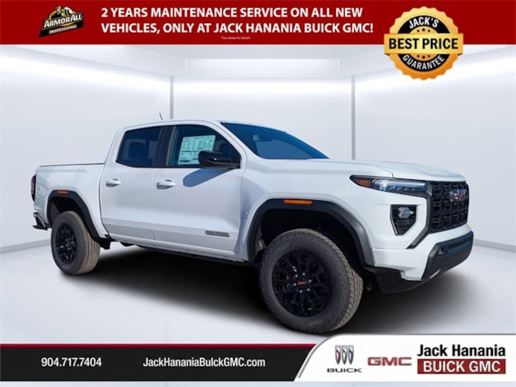 Dealer Discount of $5,000 off MSRP Summit White 2026 GMC Canyon Elevation 19/23 City/Highway MPG RWD 8-Speed Automatic 2.7L I4 Turbocharged DOHC 16V LEV3-SULEV30 310hp 2026 GMC Canyon Elevation for sale St Augustine, FL, Canyon Elevation, 4D Crew Cab, 2.7L I4 Turbocharged DOHC 16V LEV3-SULEV30 310hp, 8-Speed Automatic, Summit White, Jet Black Vinyl, 120-Volt Bed Mounted Power Outlet, 2 Rear USB Ports in Center Console (Charge-Only), 8-Way Power Driver Seat Adjuster, Automatic Emergency Braking, Blind Zone Steering Assist with Trailering, Canyon Pro Safety, Canyon Safety Plus Package, Convenience Package, CoreTec Seat Trim, Driver and Front Passenger Illuminated Visors, Driver Seatback Map Pocket, Dual-Zone Automatic Climate Control Air Conditioning, Elevation Premium Package, EZ-Lift and Lower Tailgate, Following Distance Indicator, Forward Collision Alert, Front LED Fog Lamps, Front Pedestrian and Bicyclist Braking, Heated Driver and Front Passenger Seats, Inside Rear-View Auto-Dimming Mirror, IntelliBeam Automatic High Beam on/Off, Interior Overhead Courtesy Light with Dual Reading Lamp, Lane Keep Assist with Lane Departure Warning, MultiStow Tailgate Storage Compartment, Navigation System, Power Driver Lumbar Control Seat Adjuster, Preferred Equipment Group 2VL, Preferred Package, Rear Center Fold-Down Armrest with 2 Cupholders, Rear Cross Traffic Braking, Rear of Console 120-Volt Power Outlet, Remote Vehicle Starter System, Tailgate Keyed Cylinder Lock, Til and Telescopic Manual Steering Column, Ultrasonic Rear Park Assist.