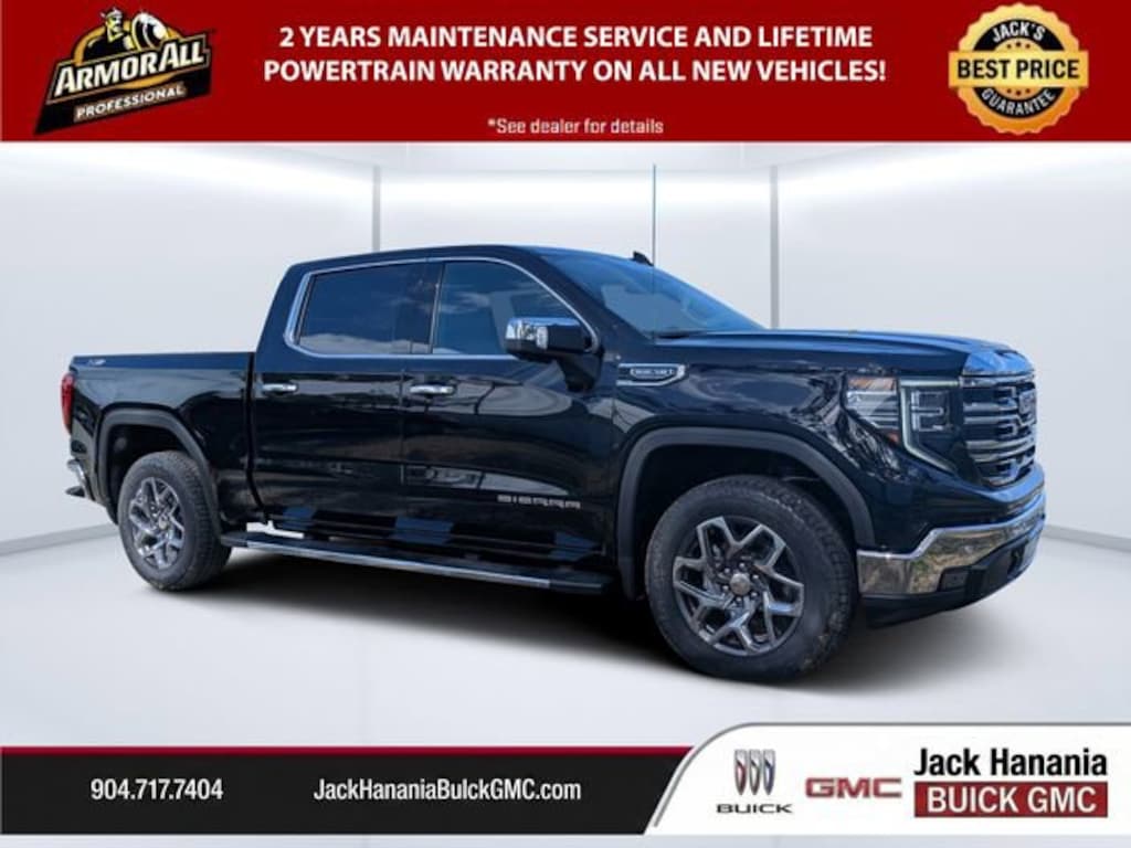 Dealer Discount of $6,757 off MSRP Onyx Black 2026 GMC Sierra 1500 SLT 15/18 City/Highway MPG 4WD 10-Speed Automatic EcoTec3 5.3L V8 2026 GMC Sierra 1500 SLT for sale St Augustine, FL, 10-Speed Automatic, 4WD, Jet Black Leather, 120-Volt Bed Mounted Power Outlet, 120-Volt Interior Power Outlet, 170 Amp Alternator, 2 Charge/Data USB Ports, 2 Charge/Data USB Ports Inside Center Console, 2 Type-C Charge-Only Rear USB Ports, 6-Speaker Audio System Feature, Adaptive Cruise Control, Auto-Locking Rear Differential, Auxiliary External Transmission Oil Cooler, Color-Keyed Carpeting Floor Covering, Deep-Tinted Glass, Dual Exhaust System, Electric Rear-Window Defogger, Electronic Precision Shift, Floor-Mounted Center Console, Front Bucket Seats, Front Frame-Mounted Black Recovery Hooks, Front Rain-Sensing Wipers, HD Rear Vision Camera, HD Surround Vision, Heated 2nd Row Outboard Seats, Heavy-Duty Air Filter, High Capacity Suspension Package, Hill Descent Control, Hitch Guidance, Hitch View, Integrated Trailer Brake Controller, LED Cargo Area Lighting, Navigation System, Off-Road Suspension, OnStar Services Capable, Perimeter Lighting, Power Door Locks, Preferred Equipment Group 4SA, Premium Bose 7-Speaker Sound System, ProGrade Trailering System, Push Button Start, Rear Cross Traffic Braking, Rear Pedestrian Detection, Rear Wheelhouse Liners, Remote Vehicle Starter System, Safety Alert Seat, Sierra Safety Plus Package, SLT Convenience Package, SLT Preferred Package, SLT Premium Plus Package, Steering Wheel Audio Controls, Trailer Camera Provisions, Trailer Side Blind Zone Alert, Trailering Package, Universal Home Remote, Wi-Fi Hotspot Capable, Wireless Charging, X31 Hard Badge, X31 Off-Road Package.