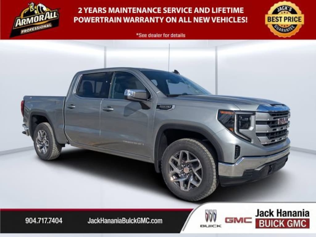 Dealer Discount of $6,956 off MSRP Sterling Metallic 2026 GMC Sierra 1500 SLE 15/18 City/Highway MPG 4WD 10-Speed Automatic EcoTec3 5.3L V8 2026 GMC Sierra 1500 SLE for sale St Augustine, FL, Sierra 1500 SLE, 4D Crew Cab, EcoTec3 5.3L V8, 10-Speed Automatic, 4WD, Sterling Metallic, Black Cloth, 120-Volt Bed Mounted Power Outlet, 120-Volt Interior Power Outlet, 2 Charge/Data USB Ports, 2 Type-C Charge-Only Rear USB Ports, Adaptive Cruise Control, Auto-Locking Rear Differential, Color-Keyed Carpeting Floor Covering, Deep-Tinted Glass, Dual Exhaust System, Dual-Zone Automatic Climate Control, Electric Rear-Window Defogger, Front Frame-Mounted Black Recovery Hooks, Front Rubberized-Vinyl Floor Mats, HD Rear Vision Camera, Heavy-Duty Air Filter, High Capacity Suspension Package, Hill Descent Control, Hitch Guidance, Hitch View, Integrated Trailer Brake Controller, LED Cargo Area Lighting, Navigation System, Off-Road Suspension, OnStar Services Capable, Power Door Locks, Preferred Equipment Group 3SA, Preferred Package, Push Button Start, Rear Rubberized-Vinyl Floor Mats, Rear Wheelhouse Liners, Remote Start Package, Remote Vehicle Starter System, SLE Convenience Package, SLE Value Package, Standard Suspension Package, Steering Wheel Audio Controls, Trailering Package, Universal Home Remote, Wheels: 18 x 8.5 6-Spoke Machined Aluminum, Wi-Fi Hotspot Capable, X31 Hard Badge, X31 Off-Road Package.
