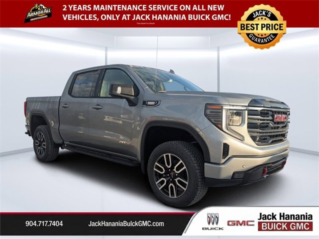 2026 GMC Sierra 1500 AT4 for sale St Augustine, FL, Sierra 1500 AT4, 4D Crew Cab, 3.0L I6, 10-Speed Automatic, 4WD, Sterling Metallic, Jet Black With Kalahari Accents Leather, 120-Volt Bed Mounted Power Outlet, 120-Volt Interior Power Outlet, 2 Charge/Data USB Ports Inside Center Console, 2 Type-C Charge-Only Rear USB Ports, 2 USB Ports, 220 Amp Alternator, AT4 Preferred Package, AT4 Premium Package, Auto-Locking Rear Differential, Bed View Camera, Black Chrome Grille Insert Bars, Color-Keyed Carpeting Floor Covering, Deep-Tinted Glass, Electric Rear-Window Defogger, Floor-Mounted Center Console, Front Prem Floor Liners w/Removable Carpet Insert, Front Rain-Sensing Wipers, HD Surround Vision, Heated 2nd Row Outboard Seats, Heated Driver & Front Outboard Passenger Seating, Heavy-Duty Air Filter, Hill Descent Control, Hitch Guidance, Hitch View, In-Vehicle Trailering System App, Integrated Trailer Brake Controller, Keyless Open & Start, LED Cargo Area Lighting, Multicolor 15 Diagonal Head-Up Display, Navigation System, Off-Road High Clearance Step (LPO), OnStar Services Capable, Perimeter Lighting, Power Door Locks, Power Front Passenger Windows w/Express Up/Down, Power Front Windows w/Driver Express Up/Down, Power Rake & Telescoping Steering Column, Power Rear Windows w/Express Down, Power Sliding Rear Window w/Rear Defogger, Preferred Equipment Group 4SB, Premium Bose 7-Speaker Sound System, Push Button Start, Rear Camera Mirror, Rear Cross Traffic Braking, Rear Pedestrian Detection, Rear Prem Floor Liners w/Removable Carpet Insert, Rear Wheelhouse Liners, Red Recovery Hooks, Remote Vehicle Starter System, SiriusXM w/360L Trial Subscription, Spray-On Pickup Bedliner w/GMC Logo, Steering Wheel Audio Controls, Technology Package, Theft Deterrent System (Unauthorized Entry), Trailer Camera Provisions, Trailer Side Blind Zone Alert, Trailering Package, Ultrasonic Front & Rear Park Assist, Universal Home Remote, Ventilated Driver & Front Passenger Seats, Wi-Fi Hotspot Capable, Wireless Charging.
