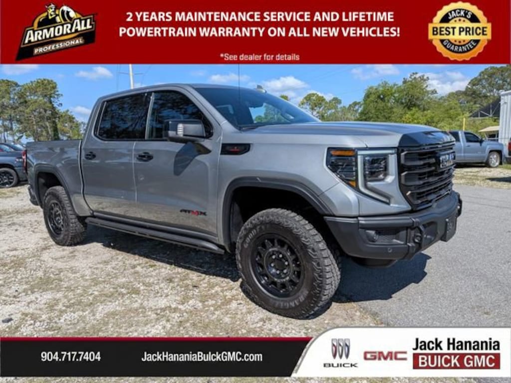 Dealer Discount of $11,829 off MSRP Sterling Metallic 2026 GMC Sierra 1500 AT4X 19/20 City/Highway MPG 4WD 10-Speed Automatic 3.0L I6 2026 GMC Sierra 1500 AT4X for sale St Augustine, FL, Sierra 1500 AT4X, 4D Crew Cab, 3.0L I6, 10-Speed Automatic, 4WD, Sterling Metallic, Obsidian Rush Leather, 120-Volt Bed Mounted Power Outlet, 120-Volt Interior Power Outlet, 1st & 2nd Row AEV All-Weather Floor Liners (LPO), 2 Charge/Data USB Ports Inside Center Console, 2 Type-C Charge-Only Rear USB Ports, 2 USB Ports, AEV Branded Front Head Restraints, AEV Stamped-Steel Rear Bumper, AEV Tailgate Decal with Exterior Badging, AT4X AEV Edition, Bed View Camera, Black Badging Package, Black GMC Emblems, Black Sierra Nameplates, Bose Premium Series with 12- Speaker System, Color-Keyed Carpeting Floor Covering, Deep-Tinted Glass, Driver-Selectable Full-Locking Front Differential, Driver-Selectable Full-Locking Rear Differential, Electric Rear-Window Defogger, Floor-Mounted Center Console, Front Premium Floor Liners with Removable Carpet Insert, Front Rain-Sensing Wipers, Gloss Black Door Handles, Gloss Black Header with Dark Nickel Grille Insert Bars, HD Surround Vision, Heated 2nd Row Outboard Seats, Heated Driver and Front Outboard Passenger Seating, Heavy-Duty Air Filter, Hill Descent Control, Hitch Guidance, Hitch View, in-Vehicle Trailering System App, Integrated Trailer Brake Controller, Keyless Open and Start, LED Cargo Area Lighting, Multicolor 15 Diagonal Head-Up Display, MultiPro Tailgate Audio System by Kicker, Navigation System, Off-Road Suspension, OnStar Services Capable, Perimeter Lighting, Power Door Locks, Power Front Passenger Windows with Express Up/Down, Power Front Windows with Driver Express Up/Down, Power Rake and Telescoping Steering Column, Power Rear Windows with Express Down, Power Sliding Rear Window with Rear Defogger, Power Sunroof, Preferred Equipment Group 4SG, Push Button Start, Rear Cross Traffic Braking, Rear Pedestrian Detection, Rear Premium Floor Liners with Removable Carpet Insert, Rear Wheelhouse Liners, Remote Vehicle Starter System, Rocker Protection, SiriusXM with 360L Trial Subscription, Spray-on Pickup Bedliner with GMC Logo, Steering Wheel Audio Controls, Theft Deterrent System (unauthorized Entry), Trailer Camera Provisions, Trailer Side Blind Zone Alert, Trailer Tire Pressure Monitor System, Trailering Package, Ultrasonic Front and Rear Park Assist, Universal Home Remote, Ventilated Driver and Front Passenger Seats, Wheels: 18 x 8.5 12-Spoke High Gloss Black Aluminum, Wi-Fi Hotspot Capable, Wireless Charging.Email, call, or stop in today! Jack Hanania Buick GMC, the difference is we offer a transparent buying experience. Prices are PLUS tax, tag, title fee, $994 Pre-Delivery Service Fee and $398 Electronic Tag Registration Service Fee and dealer installed options. Customers must trade in a vehicle to receive $1,500 trade-in assistance credit. Financing must be provided by the dealership's third-party lenders for Customer to receive $1,500 finance assist credit. The final online sale price and Jacks discount include Jacks $1500 trade-in assistance, Jacks $1500 finance assistance and the GM trade-in assistance credits. Finance assist credits do not stack with GM special APR programs. Military, First Responder, GM My Rewards, Supplier and GMS pricing are additional incentives you may qualify for. The final new vehicle sales price includes all GM rebates and cannot be combined with special GM APR. Pre-owned vehicle pricing excludes any mechanical and cosmetic reconditioning expenses or vehicle transport and acquisition costs to the Dealership from factory sales, which amount will vary depending on the vehicle. Some New and Used trucks are upfit with aftermarket lift kits, custom wheel and tire packages, that are not included in the online sales price. Vehicles with lift kits, custom wheel and tire packages, tint and ceramic coating will be added to the sales price. All prices, specifications, a
