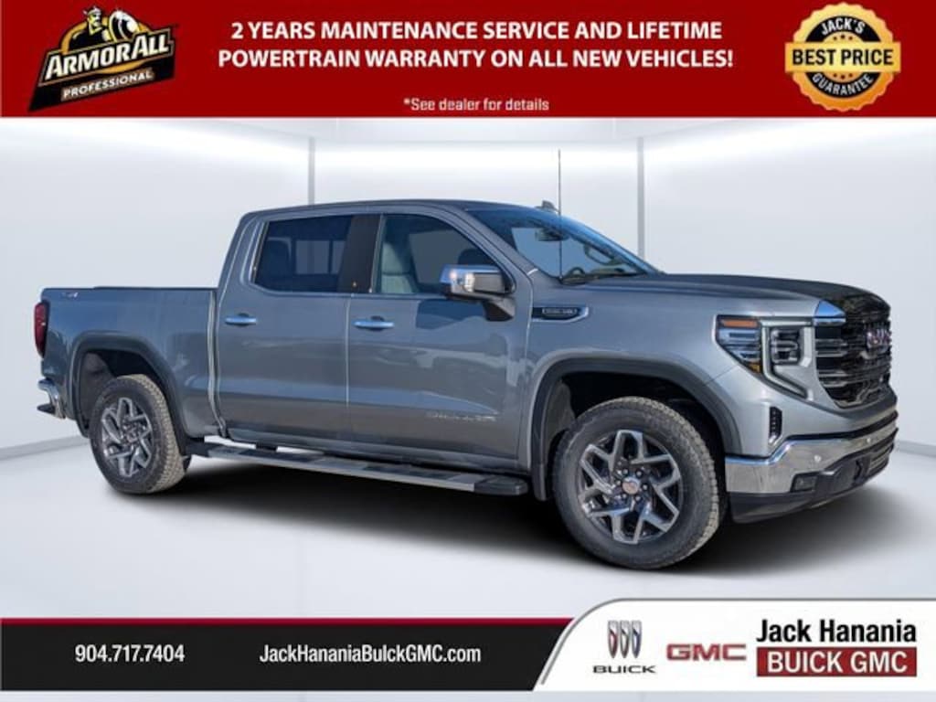 Dealer Discount of $6,774 off MSRP Sterling Metallic 2026 GMC Sierra 1500 SLT 15/18 City/Highway MPG 4WD 10-Speed Automatic EcoTec3 5.3L V8 2026 GMC Sierra 1500 SLT for sale St Augustine, FL, 10-Speed Automatic, 4WD, Dark Walnut/Slate Leather, 120-Volt Bed Mounted Power Outlet, 120-Volt Interior Power Outlet, 170 Amp Alternator, 2 Charge/Data USB Ports, 2 Charge/Data USB Ports Inside Center Console, 2 Type-C Charge-Only Rear USB Ports, 6-Speaker Audio System Feature, Adaptive Cruise Control, Auto-Locking Rear Differential, Auxiliary External Transmission Oil Cooler, Color-Keyed Carpeting Floor Covering, Deep-Tinted Glass, Dual Exhaust System, Electric Rear-Window Defogger, Electronic Precision Shift, Floor-Mounted Center Console, Front Bucket Seats, Front Frame-Mounted Black Recovery Hooks, Front Rain-Sensing Wipers, HD Rear Vision Camera, HD Surround Vision, Heated 2nd Row Outboard Seats, Heavy-Duty Air Filter, High Capacity Suspension Package, Hill Descent Control, Hitch Guidance, Hitch View, Integrated Trailer Brake Controller, LED Cargo Area Lighting, Navigation System, Off-Road Suspension, OnStar Services Capable, Perimeter Lighting, Power Door Locks, Preferred Equipment Group 4SA, Premium Bose 7-Speaker Sound System, ProGrade Trailering System, Push Button Start, Rear Cross Traffic Braking, Rear Pedestrian Detection, Rear Wheelhouse Liners, Remote Vehicle Starter System, Safety Alert Seat, Sierra Safety Plus Package, SLT Convenience Package, SLT Preferred Package, SLT Premium Plus Package, Steering Wheel Audio Controls, Trailer Camera Provisions, Trailer Side Blind Zone Alert, Trailering Package, Universal Home Remote, Wheels: 20 Polished Aluminum with RFX, Wi-Fi Hotspot Capable, Wireless Charging, X31 Hard Badge, X31 Off-Road Package.
