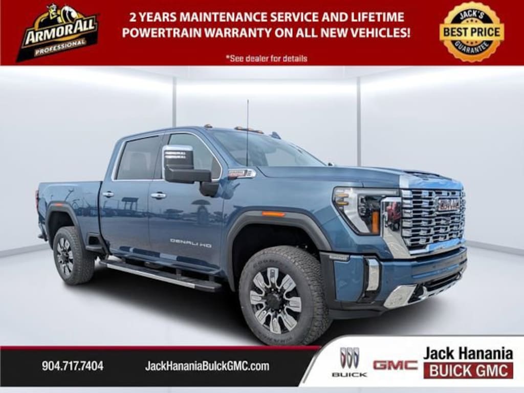 Dealer Discount of $8,267 off MSRP Downpour Metallic 2026 GMC Sierra 3500HD Denali 4WD 10-Speed Automatic Duramax 6.6L V8 Turbodiesel 120-Volt Bed Mounted Power Outlet, 120-Volt Instrument Panel Power Outlet, 2 Charge-Only Rear USB Ports, 2 Charge/Data USB Ports Inside Center Console, 2 USB Ports, 2-Speed Active Transfer Case, Auto-Dimming Inside Rearview Mirror with Camera, Bed View Camera with Two Trailer Camera Provisions, Bose Premium 7-Speaker Sound System, Deep-Tinted Glass, Denali Reserve Package, Electric Rear-Window Defogger, Floor-Mounted Center Console, Front Rain-Sensing Wipers, Gooseneck/5th Wheel Prep Package, HD Surround Vision, Heated 2nd Row Outboard Seats, Heated Driver and Front Outboard Passenger Seats, Hill Descent Control, Keyless Open and Start, LED Cargo Area Lighting, LED Smoked Amber Roof Marker Lamps, Manual Tilt-Wheel/Telescoping Steering Column, Multicolor 15 Diagonal Head-Up Display, Off-Road Suspension, Polished Exhaust Tip, Power Front Windows with Passenger Express Up/Down, Power Sliding Rear Window with Defogger, Power Sunroof, Preferred Equipment Group 5SA, Push Button Start, Rear Cross Traffic Alert, Rear Wheelhouse Liners, Remote Vehicle Starter System, Safety Alert Seat, Signature Chrome Denali Grille, SiriusXM with 360L Trial Subscription, Spray-on Pickup Bedliner with GMC Logo, Steering Wheel Audio Controls, Technology Package, Trailer Camera Provisions, Trailer Side Blind Zone Alert, Ultrasonic Front and Rear Park Assist, Unauthorized Entry Theft-Deterrent System, Universal Home Remote, Ventilated Driver and Front Passenger Seats, Wireless Charging, Wireless Phone Projection, X31 Off-Road Package.Email, call, or stop in today! Jack Hanania Buick GMC, the difference is we offer a transparent buying experience. Prices are PLUS tax, tag, title fee, $994 Pre-Delivery Service Fee and $398 Electronic Tag Registration Service Fee and dealer installed options (see dealer for details). Customer must trade-in a vehicle to receive $1,500 Trade Assist credit. Financing must be provided by a third-party lender using this dealership's assistance for Customer to receive $1,500 Financing Assist credit. The final online sale price and Jack's Discount includes trade in and financing assist credits. Pre-owned vehicle pricing excludes any mechanical and cosmetic reconditioning expenses or vehicle transport and acquisition costs to the Dealership from factory sales, which amount will vary depending on the vehicle. Some New and Used trucks are upfit with aftermarket lift kits, custom wheel and tire packages, that are not included in the online sales price. Vehicles with lift kits, custom wheel and tire packages, tint and ceramic coating will be added to the sales price. All prices, specifications, and availability subject to change without notice. Contact dealer for most current information. All advertised pricing is on in-stock units only and includes all applicable dealer discounts, manufacturer discounts, and incentives. Certain offers and incentives presume financing through the Manufacturer Captive Lender, subject to approved credit. Should you purchase the vehicle through the use of other funds or through other lending sources, certain offers and rebate incentives may be excluded. Due to supply chain challenges and limited inventory, vehicles may be subject to an additional market adjustment depending on inventory production, availability and market conditions. Please see dealer for details.