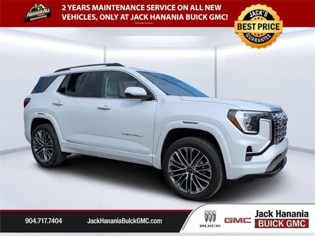 Dealer Discount of $1,827 off MSRP Glacier White 2026 GMC Terrain Denali 24/26 City/Highway MPG AWD 8-Speed Automatic with Overdrive 1.5L DOHC 2026 GMC Terrain Denali for sale St Augustine, FL, Terrain Denali, 4D Sport Utility, 1.5L DOHC, 8-Speed Automatic with Overdrive, AWD, Glacier White, Light Ash Gray / Very Dark Atmosphere Leather, All-Weather Cargo Mat (LPO), Floor Liner Package (LPO), Front All-Weather Floor Liners (LPO), Navigation System, Preferred Equipment Group 5SB, Second Row All-Weather Mat (LPO).Email, call, or stop in today! Jack Hanania Buick GMC, the difference is we offer a transparent buying experience. Prices are PLUS tax, tag, title fee, $994 Pre-Delivery Service Fee and $398 Electronic Tag Registration Service Fee and dealer installed options (see dealer for details). Customer must trade-in a vehicle to receive $1,500 Trade Assist credit. Financing must be provided by a third-party lender using this dealership's assistance for Customer to receive $1,500 Financing Assist credit. The final online sale price and Jack's Discount includes trade in and financing assist credits. Pre-owned vehicle pricing excludes any mechanical and cosmetic reconditioning expenses or vehicle transport and acquisition costs to the Dealership from factory sales, which amount will vary depending on the vehicle. Some New and Used trucks are upfit with aftermarket lift kits, custom wheel and tire packages, that are not included in the online sales price. Vehicles with lift kits, custom wheel and tire packages, tint and ceramic coating will be added to the sales price. All prices, specifications, and availability subject to change without notice. Contact dealer for most current information. All advertised pricing is on in-stock units only and includes all applicable dealer discounts, manufacturer discounts, and incentives. Certain offers and incentives presume financing through the Manufacturer Captive Lender, subject to approved credit. Should you purchase the vehicle through the use of other funds or through other lending sources, certain offers and rebate incentives may be excluded. Due to supply chain challenges and limited inventory, vehicles may be subject to an additional market adjustment depending on inventory production, availability and market conditions. Please see dealer for details. 24/26 City/Highway MPG