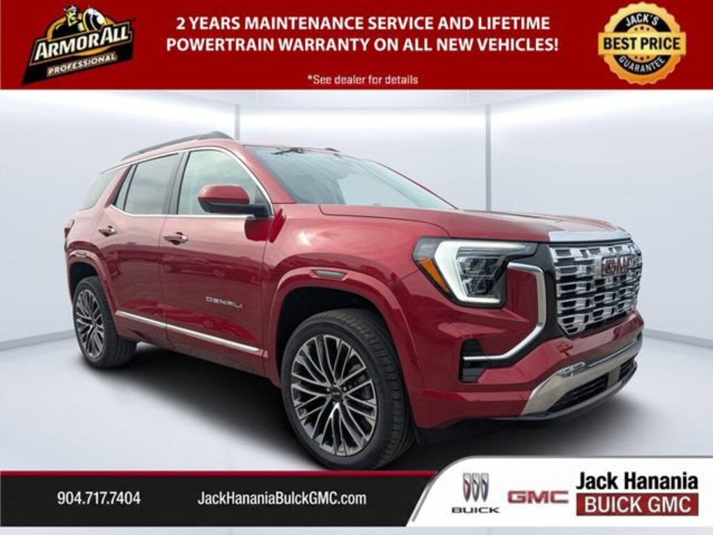 Dealer Discount of $3,723 off MSRP Volcanic Red 2026 GMC Terrain Denali 24/26 City/Highway MPG AWD 8-Speed Automatic with Overdrive 1.5L DOHC 2026 GMC Terrain Denali for sale St Augustine, FL, 2-Way Power Driver Lumbar Seat Adjuster, 3.47 Final Drive Axle Ratio, 4-Wheel Disc Brakes, 6 Speakers, 6-Speaker Audio System Feature, 8-Way Power Driver Seat Adjuster, ABS brakes, Air Conditioning, Alloy wheels, AM/FM radio: SiriusXM, Auto High-beam Headlights, Automatic temperature control, Brake assist, Bumpers: body-color, Compass, Delay-off headlights, Driver & Front Passenger Heated Seats, Driver door bin, Driver vanity mirror, Dual front impact airbags, Dual front side impact airbags, Electronic Stability Control, Emergency communication system: OnStar and GMC connected services capable, Four wheel independent suspension, Front anti-roll bar, Front Bucket Seats, Front Center Armrest, Front dual zone A/C, Front fog lights, Front reading lights, Fully automatic headlights, Garage door transmitter, Heated door mirrors, Heated front seats, Heated rear seats, Heated steering wheel, Illuminated entry, Low tire pressure warning, Memory seat, Navigation System, Occupant sensing airbag, Outside temperature display, Overhead airbag, Overhead console, Panic alarm, Panoramic Power Sunroof w/Sunshade, Passenger door bin, Passenger vanity mirror, Perforated Leather-Appointed Seat Trim, Power door mirrors, Power driver seat, Power Liftgate, Power passenger seat, Power steering, Power windows, Radio data system, Radio: Premium GMC Infotainment System, Rain sensing wipers, Rear air conditioning, Rear anti-roll bar, Rear seat center armrest, Rear window defroster, Rear window wiper, Remote keyless entry, Security system, SiriusXM w/360L Trial Subscription, Speed control, Speed-sensing steering, Split folding rear seat, Spoiler, Sport steering wheel, Steering wheel mounted audio controls, Tachometer, Telescoping steering wheel, Tilt steering wheel, Traction control, Trip computer, Variably intermittent wipers, Ventilated Driver Seat, Ventilated Front Passenger Seat, Ventilated front seats, Wheels: 19 x 7.5 Midnight Silver Aluminum, Wheels: 20 x 8 After Midnight Aluminum, Wireless Apple CarPlay/Wireless Android Auto.