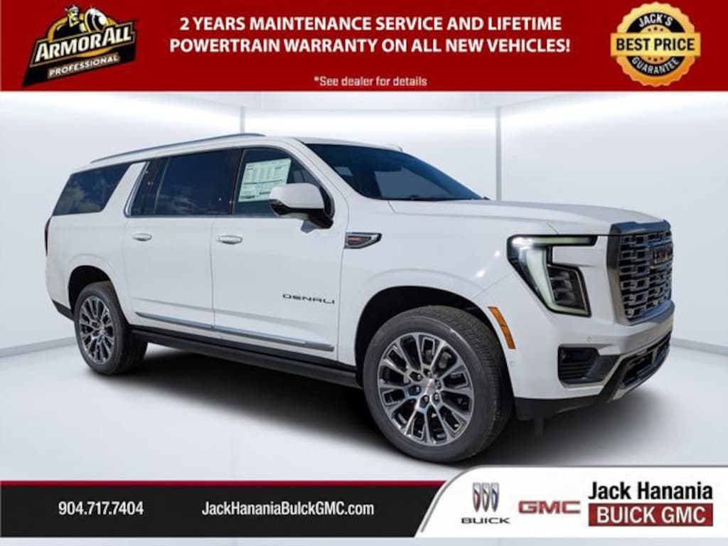 Dealer Discount of $3,779 off MSRP Summit White 2026 GMC Yukon XL Denali 14/18 City/Highway MPG 4WD 10-Speed Automatic with Overdrive EcoTec3 6.2L V8 2026 GMC Yukon XL Denali for sale St Augustine, FL, 4WD, 10 Speakers, 15 Diagonal Multi-Color Head-Up Display, 3 Years OnStar One, 3.23 Rear Axle Ratio, 3rd row seats: split-bench, 4-Way Power Driver Lumbar Seat Adjuster, 4-Way Power Front Passenger Lumbar Seat Adjuster, 4-Wheel Disc Brakes, ABS brakes, Adaptive suspension, Air Conditioning, Alloy wheels, AM/FM radio: SiriusXM with 360L, Apple CarPlay/Android Auto, Audio memory, Auto High-beam Headlights, Auto-dimming door mirrors, Auto-dimming Rear-View mirror, Auto-leveling suspension, Automatic temperature control, AutoSense Hands-Free Power Liftgate, Bodyside moldings, Bose 10-Speaker Surround with CenterPoint, Brake assist, Bright Front and Rear Door Sill Plates, Bumpers: body-color, Compass, Delay-off headlights, Driver door bin, Driver vanity mirror, Dual Exhaust System, Dual front impact airbags, Dual front side impact airbags, Dual-Pane Panoramic Power Sunroof, Electronic Stability Control, Emergency communication system: OnStar and GMC connected services capable, Exterior Parking Camera Rear, Four wheel independent suspension, Front anti-roll bar, Front Bucket Seats, Front Center Armrest, Front dual zone A/C, Front fog lights, Front reading lights, Fully automatic headlights, Galvano Bodyside Moldings, Garage door transmitter, Heads-Up Display, Heated door mirrors, Heated Driver and Front Passenger Seats, Heated front seats, Heated rear seats, Heated steering wheel, Illuminated entry, Low tire pressure warning, Magnetic Ride Control Suspension, Memory seat, Navigation system: GMC Connected Navigation, Occupant sensing airbag, Outside temperature display, Overhead airbag, Overhead console, Panic alarm, Passenger door bin, Passenger vanity mirror, Perforated Heated and Ventilated Driver and Front Passenger Seats, Perforated Leather Seating Surfaces, Power door mirrors, Power driver seat, Power Liftgate, Power passenger seat, Power Release 2nd Row Bucket Seats, Power steering, Power Tilt and Telescopic Steering Column, Power windows, Power-Retractable Assist Steps, Preferred Equipment Group 5SA, Radio: 16.8 Diagonal Premium GMC Infotainment System, Rain sensing wipers, Rear air conditioning, Rear anti-roll bar, Rear reading lights, Rear window defroster, Rear window wiper, Remote keyless entry, Security system, SiriusXM with 360L, Speed control, Speed-sensing steering, Split folding rear seat, Spoiler, Steering wheel memory, Steering wheel mounted audio controls, Sun and Power Step Package, Tachometer, Telescoping steering wheel, Tilt steering wheel, Traction control, Trip computer, Turn signal indicator mirrors, Variably intermittent wipers, Ventilated front seats, Voltmeter, Wheel Locks (set of 4), Wheels: 20 x 9 6-Spoke Polished Aluminum, Wheels: 22 x 9 Ultra-Bright Machined, 4WD.